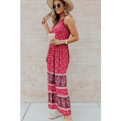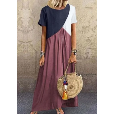Color-block Paneled Crew Neck Casual Maxi Dress