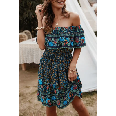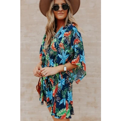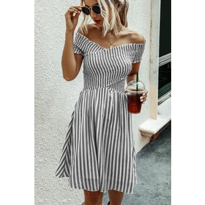 Gradient Short Sleevels V-neck Casual Maxi Dress