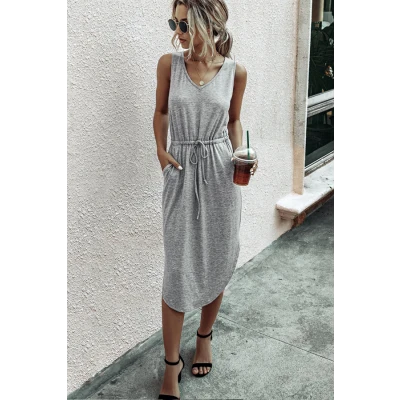 Asymmetric Hem Drawstring Waist Midi Casual Dress