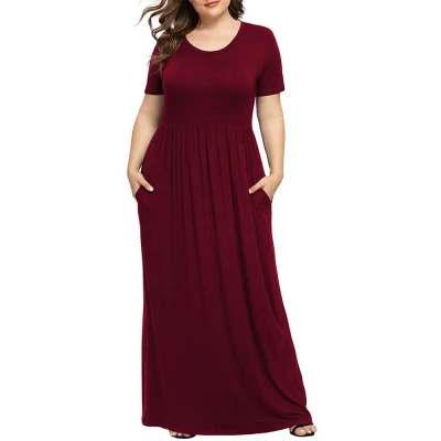 Short Sleeve Casual Plus Size Maxi Dress with Pockets